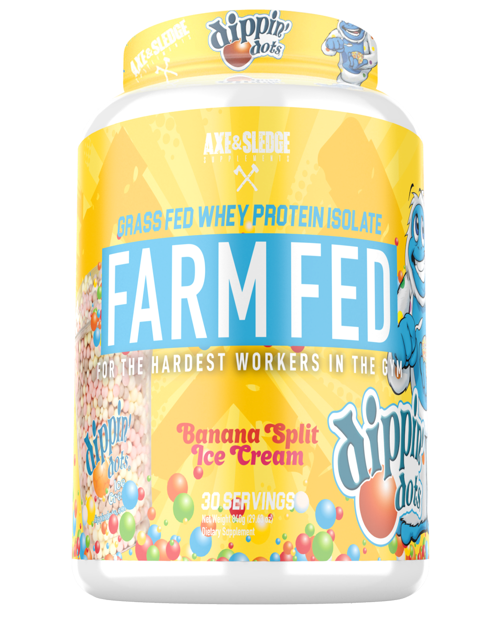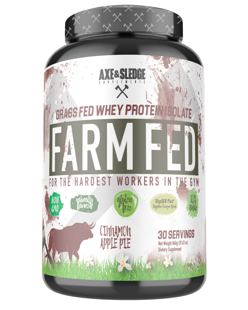 AXE AND SLEDGE FARM FED, THIS 100% GRASS-FED WHEY PROTEIN ISOLATE IS THE NEXT GENERATION IN NATURAL PROTEIN. PROTEIN IS AN ESSENTIAL PART OF BUILDING AND MAINTAINING YOUR MUSCLE, AND WE AT AXE AND SLEDGE DEMAND THAT OUR WHEY PROTEIN BE OF THE HIGHEST QUALITY! FARM FED IS A PROTEIN IN WHICH FARMERS HAVE FEED THEIR CATTLE NATURALLY WITHOUT THE UNNECESSARY USE OF SYNTHETIC HORMONES SUCH AS RBST AND RBGH.