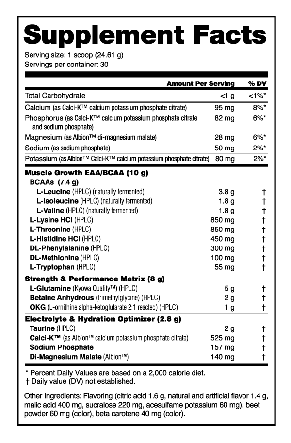 We've gone one step further by adding glutamine and betaine, that have been scientifically proven to accelerate recovery, replenish energy stores, improve strength, and keep you hydrated during your workouts.