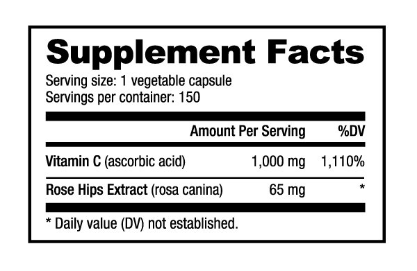 NutraBio Vitamin C contains 1000mg of natural ascorbic acid with 65 mg of Rose Hips, a plant source containing naturally occurring Vitamin C, anthocyanins, and bioflavonoids.
